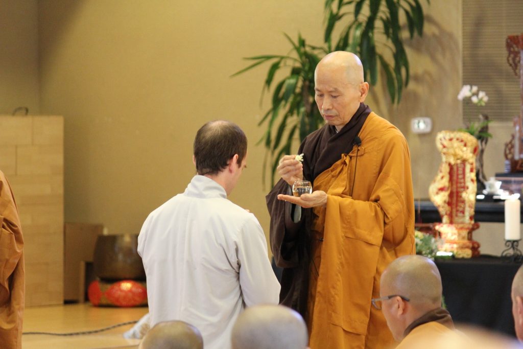 Thầy Thích Phước Tịnh đang làm lễ xuất gia cho Phật tử tây phương